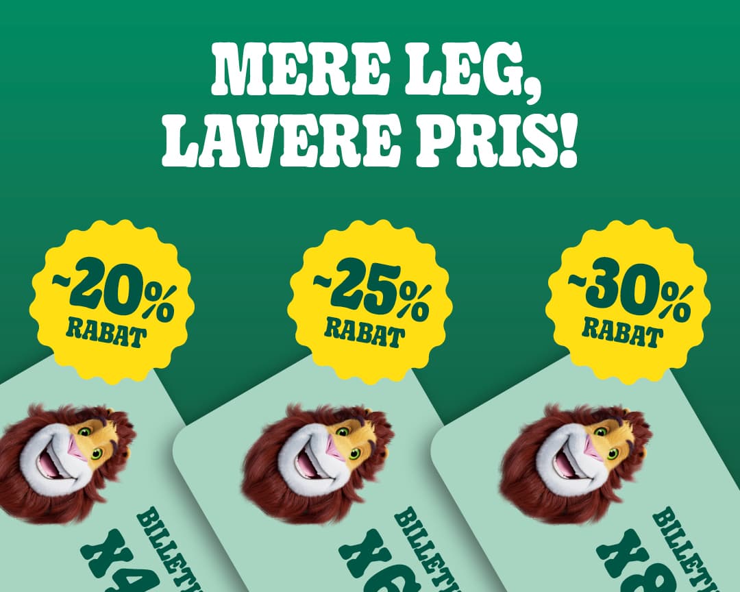 Leg mere - Betal mindre! Køb et billetkort og spar op til 30%. Jo mere du leger, jo mindre betaler du!