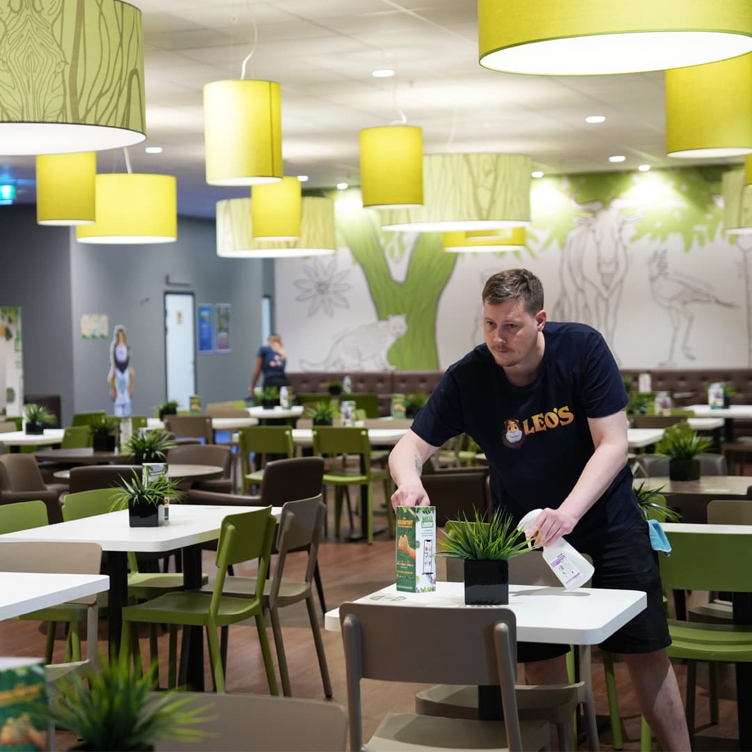 The Playroom is cleaned according to established routines, with each attraction cleaned according to its specific requirements.