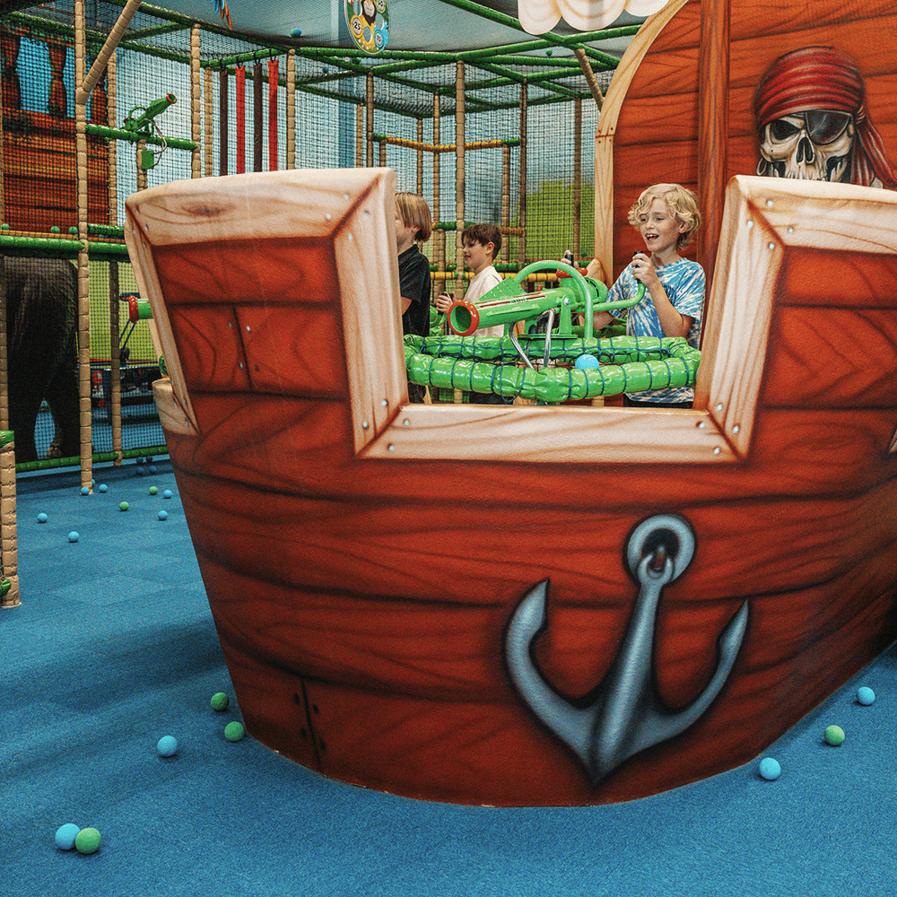 På Pirate Ship starter legen med det samme, du træder op på dækket. Én griber roret, en anden løber hen til kanonerne, og en tredje er allerede i gang med at udforske resten af skibet. Her er der ikke noget fast program – børnene styrer selv legen. Pludselig bliver skibet til en skattejagt, en søkamp eller en opdagelsesrejse, hvor fantasien får frit spil.
