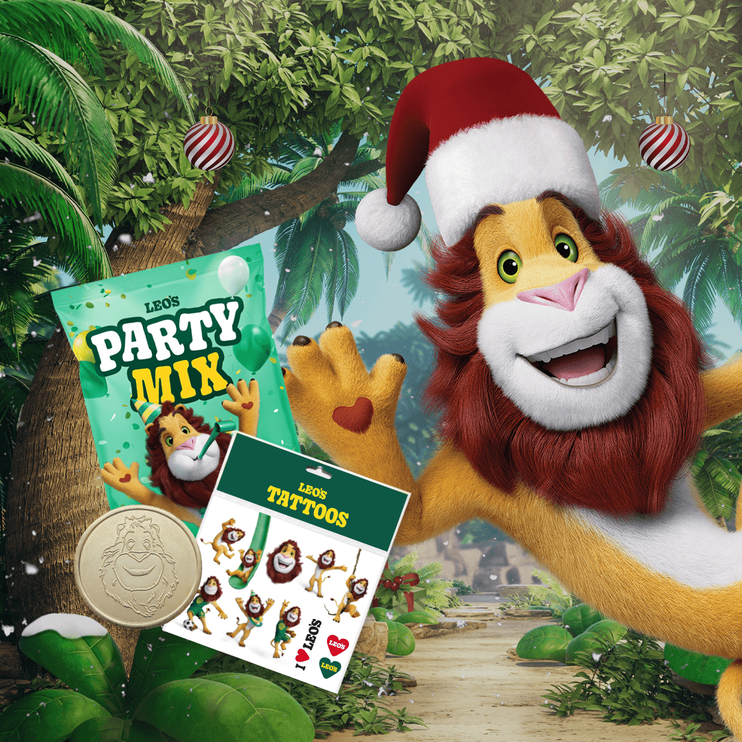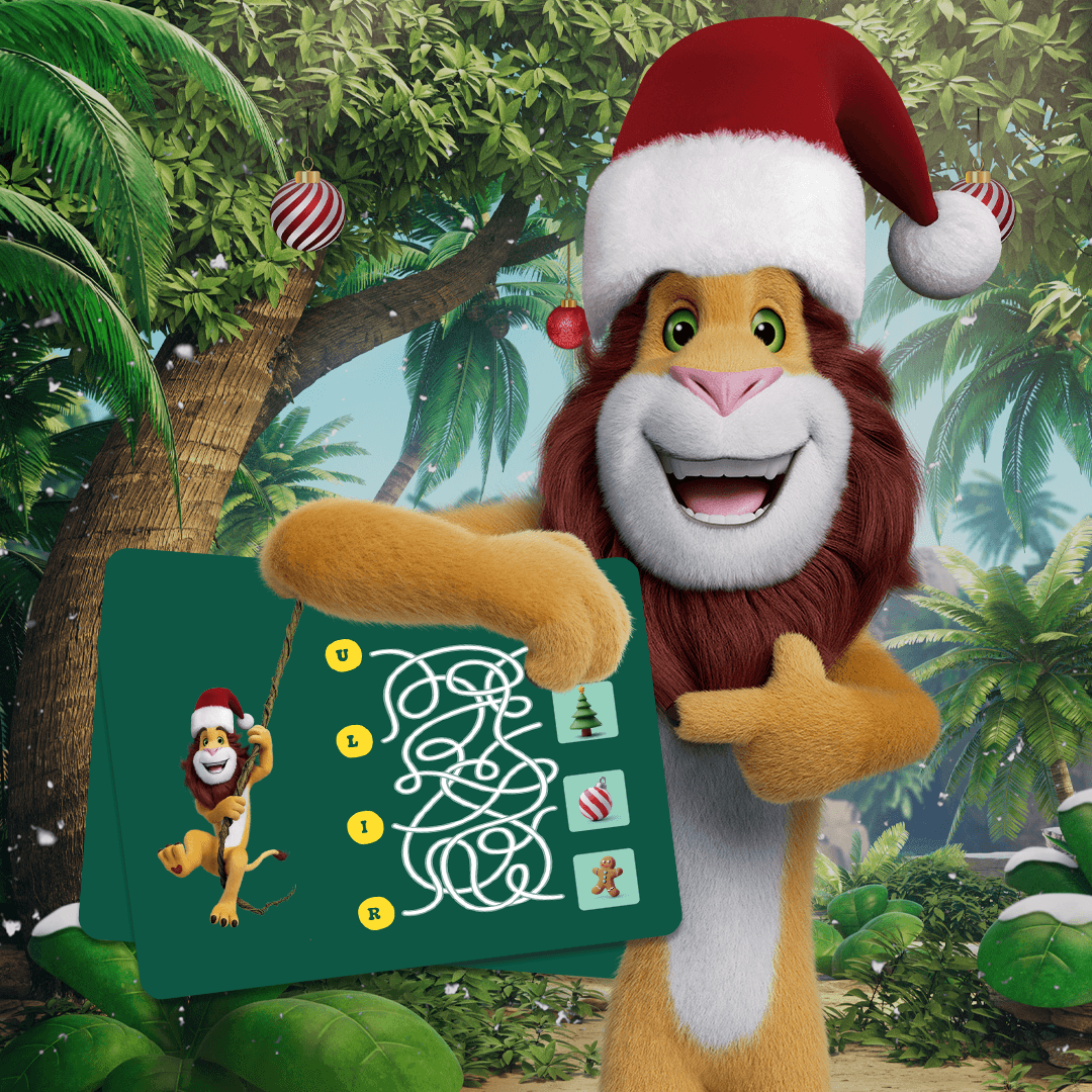 Leo har gemt gaver inde i junglen – tag afsted ud at lede på gavejagt! Tag dine fund med op til kassen og modtag din helt egen juleoverraskelse. - Løs juleordgåden